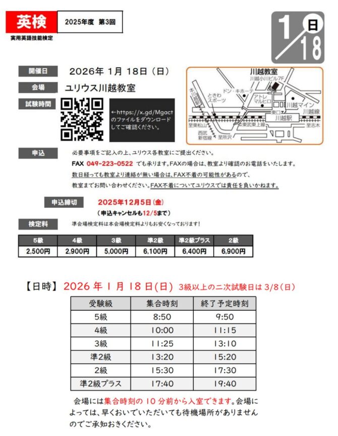 2025年9月28日(日)実施 第2回英語技能検定 試験結果返却日のお知らせ