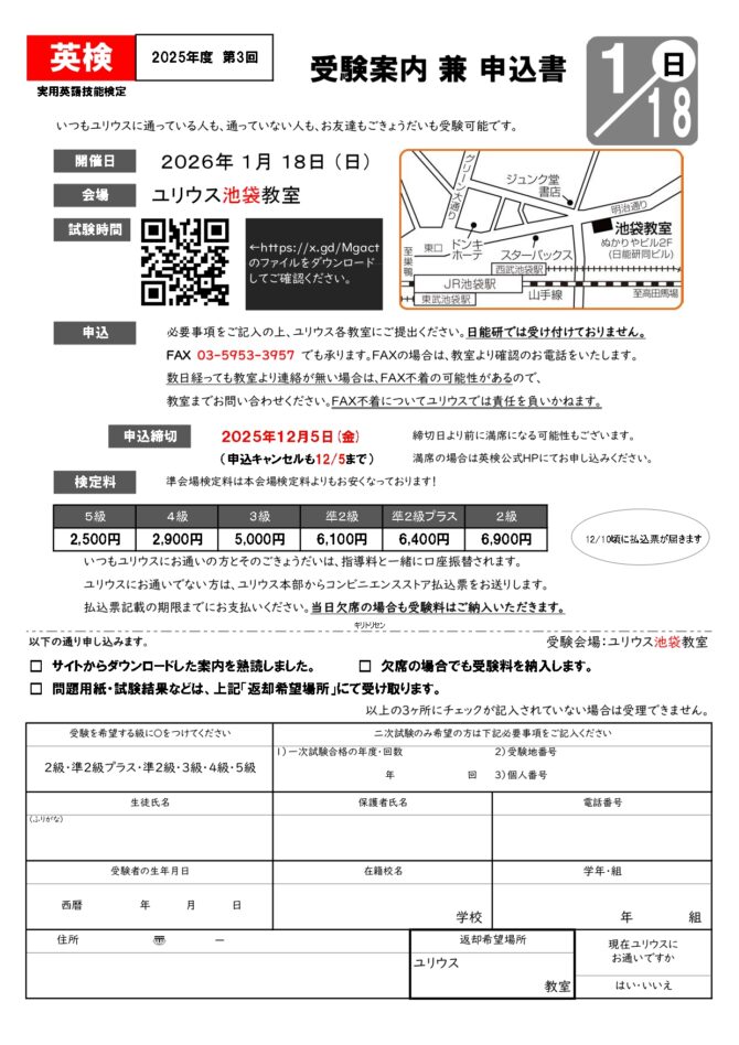2026年1月18日に実施いたします。お申し込みは必ず「書面にて」お願いいたします。