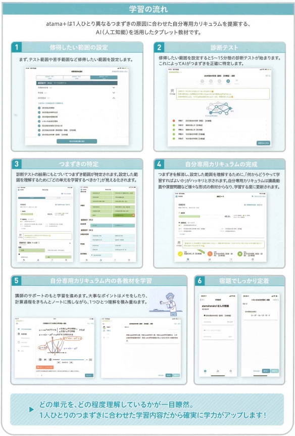 上記のような悩みが全て解決できるシステムがAI学習のatama+です。