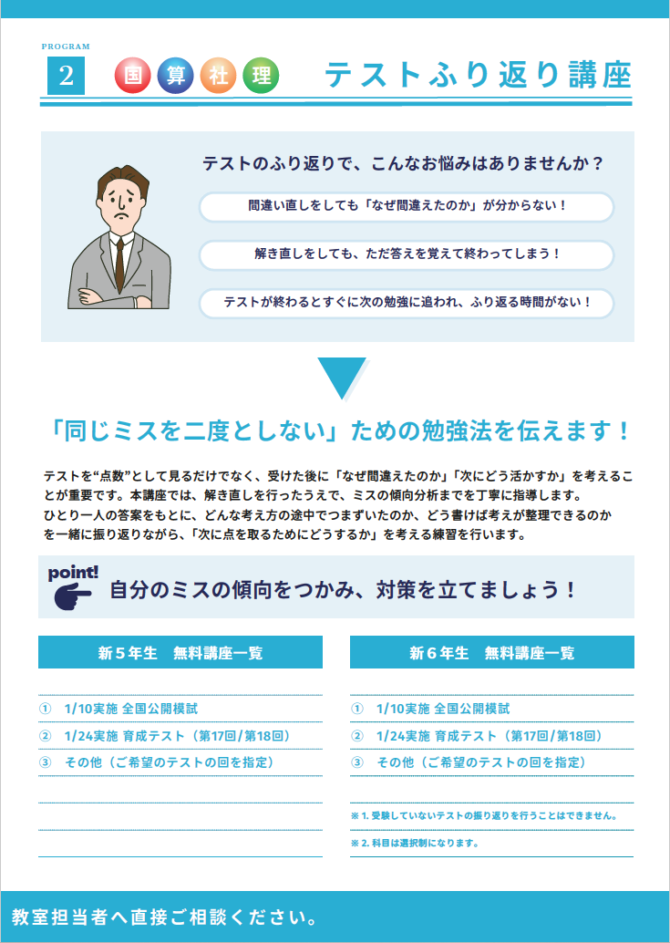ひとり1人の生徒に現在悩んでいることをお伺いして、丁寧に対応させていただきます。