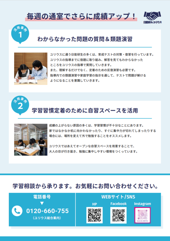 その上でユリウス個別指導の通室に仕方をご提案させていただきます。