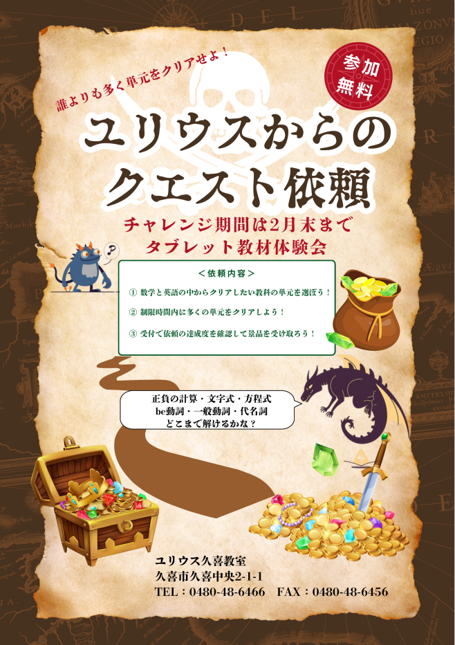 日能研へお通いのお子さま対象のユリウスの無料体験講座になります。